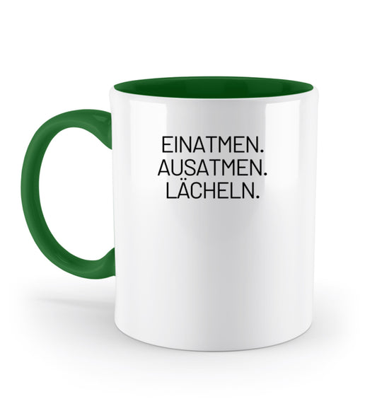 EINATMEN. AUSATMEN. LÄCHELN. - Zweifarbige Tasse